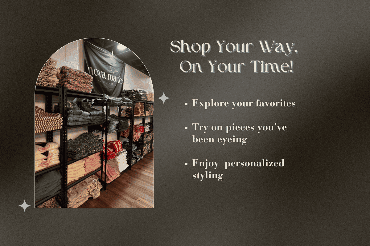 Whether you want to try on your favorite pieces before committing or need a personalized styling session to refresh your wardrobe, we’ve got you covered!