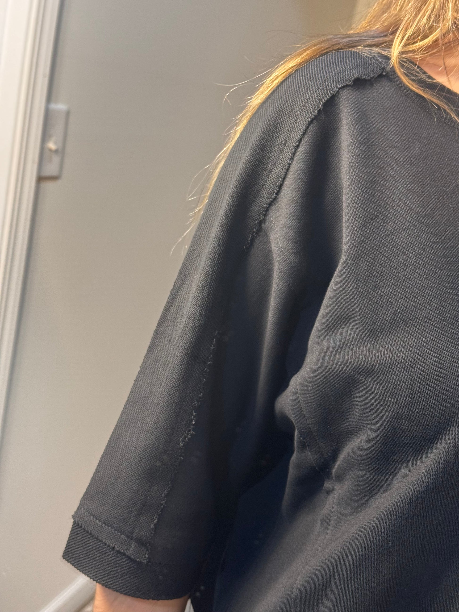 Your new go-to for laid-back days. Made from a soft, lightweight cotton-blend French terry, this oversized top combines comfort and style with effortless ease. Relaxed dolman sleeves and reversed fabric paneling create texture and dimension, while raw edge seams and side slits add a casual, lived-in feel. Perfect for layering or lounging, this piece is designed for everyday versatility.