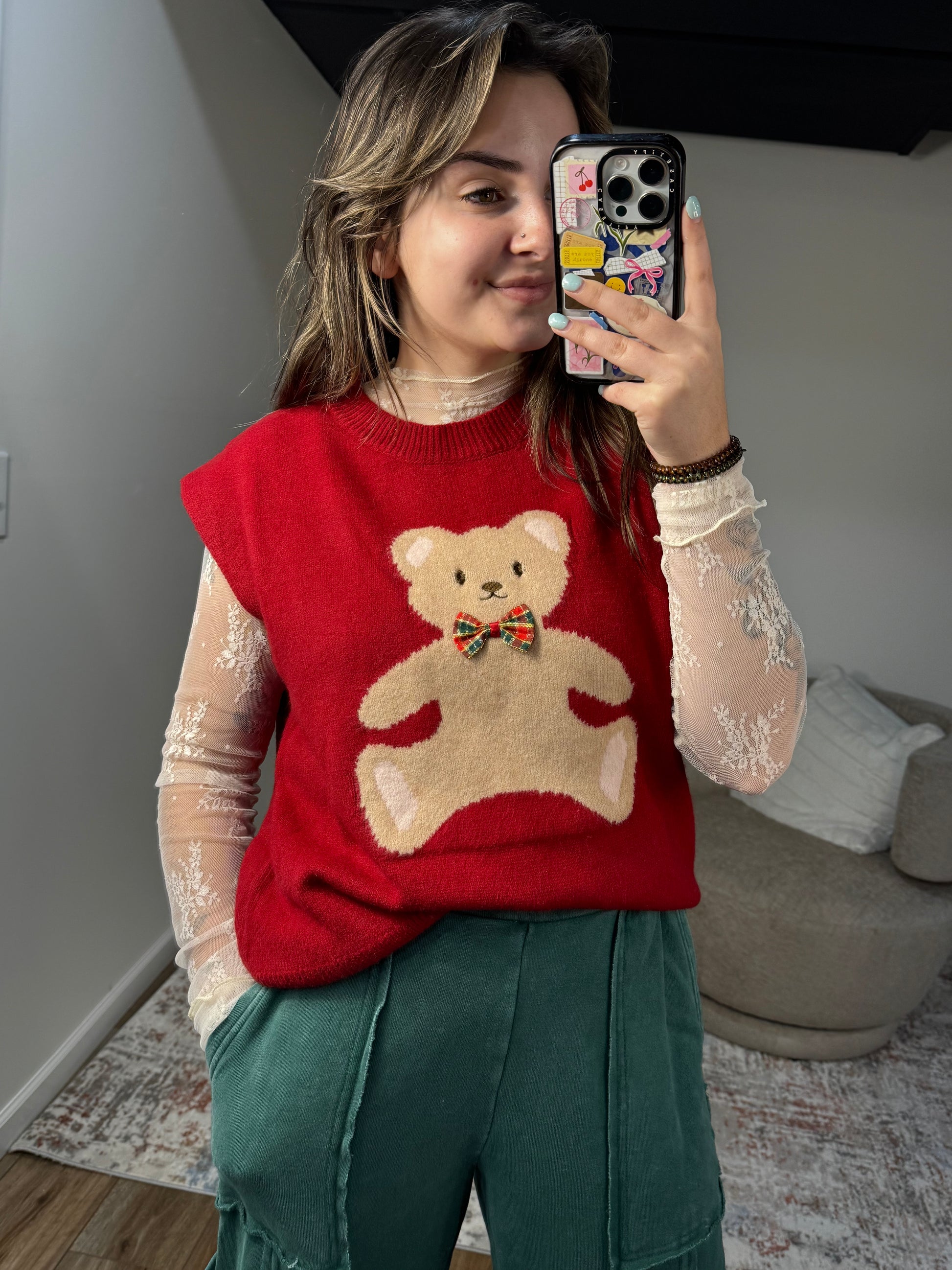 The Charlotte Teddy Bow Sweater Vest is equal parts cozy and charming. Featuring a playful plaid design accented by a sweet bow detail, this vest offers soft warmth and a relaxed fit that’s perfect for layering. Ideal for holiday gatherings, parties, or Christmas celebrations, it’s a versatile piece that blends festive style with everyday comfort.